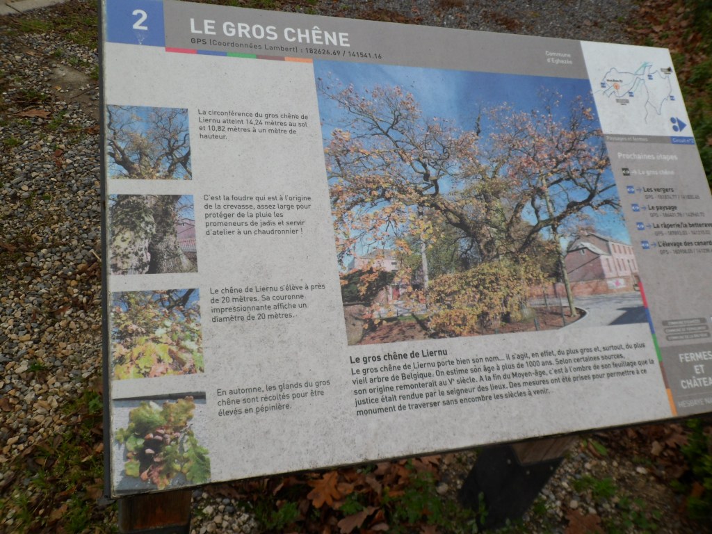 Samedi la météo annoncée est bonne pour la pratique du vélo alors je décide de faire une permanente et j’opte pour celle de Meux cyclo. J’arrive au village de Meux à 8h45 sur la place, rue du Chainia, je vois un commerce déjà ouvert pour apposer mon cachet de départ. Ensuite mes préparatifs terminés et bien botté je démarre à 9h02 en traversant le village. Je prends la direction de Grand-Leez le long de son étang puis direction de Perwez, Glimes et Jauchelette juste devant la magnifique ferme de la Ramée, photo oblige. Je continue vers Huppaye pour prendre le ravel L142 qui me conduit jusque Autre-Eglise, je trouve une pharmacie qui accepte de mettre le tampon sur ma feuille de contrôle il est 10h28. Je continue , après avoir pris une photo du monument près de son église, Foix-Les-Caves, Ramilies,Offus, je reprends le ravel qui me conduit à Eghezée, Mehaigne, Aische-en-Refail, arrêt photo pour son château. Je continue vers Liernu, de nouveau arrêt photo pour le Gros Chêne âgé de plus de mille ans ensuite je reprends ma route pour rentrer à Meux je trouve un commerce ouvert pour apposer mon dernier tampon, il est 11h55 lorsque je retourne à la voiture. Une très belle balade sur des routes en bon état, une météo qui affiche une moyenne de 6° sur le parcours mais je dois subir le vent à partir de 11h sur le chemin du retour.