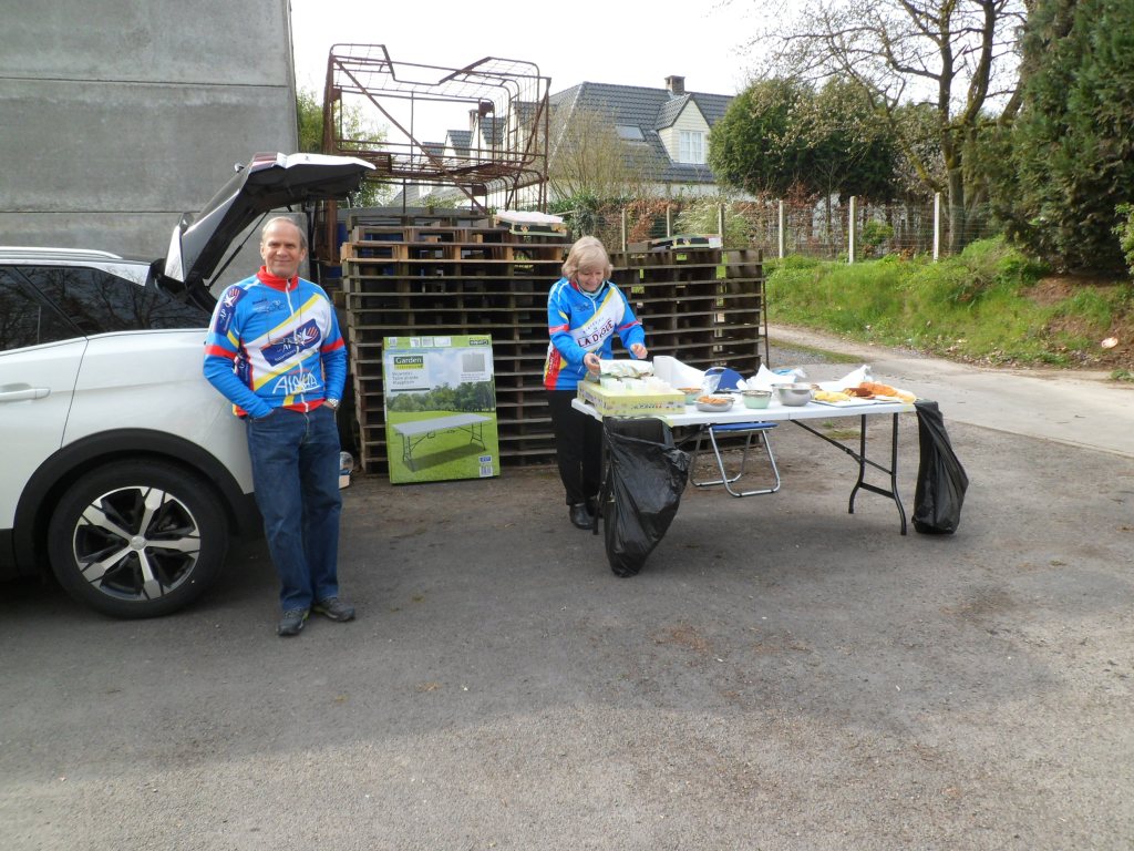 Ensuite nous allons préparer notre matériel, je démarre à 8h03. La trace me conduit vers Farciennes -Lambusart – Velaine – Jemeppe s/s – Moustier – Morimont – Onoz – Mazy – Bossière et ses gros pavés – Ferooz – Gembloux – Cortil Noirmont – Chastre lieu du ravito bien garni et chaleureux. Je reprends la route vers Villeroux – Beaurieux où j’entame une longue côte affichant 8% et même 11% pour arriver à Villers la Ville – Sars Dame Aveline – Les Bons Villers – Frasnes – Mellet et retour au local en passant par le Wainage et Lambusart.