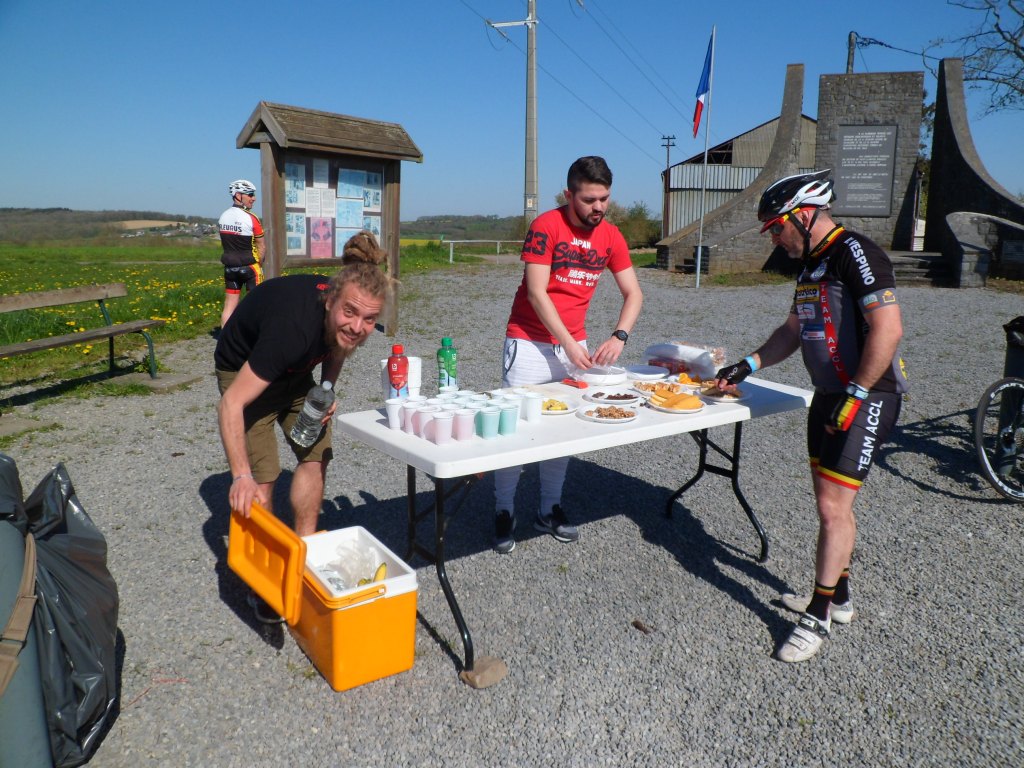Samedi je vais rouler dans ma région, je me rends à Gilly pour une nouvelle organisation avec la rando » Rallye de l’amitié ». J’arrive à 7h05, je suis le premier à m’inscrire, je reçois un bon pour une boisson au retour, une barre de céréale pour la route. René arrive juste au moment où je partais, je le salue puis je démarre en me dirigeant vers Chatelet- Presles – Sart Eustache – Devant les Bois – Bossière – Graux – Denée – Warnant, je passe devant l’escargotière – Anhée – Houx – Dinant endroit où mon ami Eric me rattrape, nous continuerons ensemble après avoir traversé le pont de Dinant une longue côte qui englobe Bouvignes sur Meuse, Rostenne et Haut le Wastia lieu du ravito bien sympa et bien garni. Après avoir repris des forces bien méritées nous continuons vers Foy – Sosoye – Maredsous et sa longue côte – Maredret – Ermeton – Bisemerée etc …. Je rentre au vélodrome à 13h45. Eric qui avait pris de l’avance sur moi me rejoint à la voiture, c’est ensemble que je fais valider mon parcours, nous prendrons notre traditionnelle bière bien méritée.