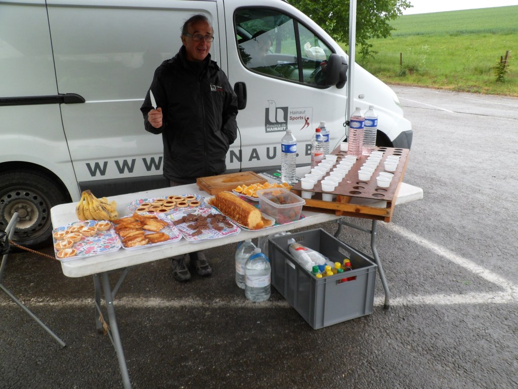 Samedi lorsque je me suis levé à 6h, il tombait des cordes. Je me suis tâté avant de décider de partir quand même avec l’espoir que cela cesserait rapidement. alors je me rends à Marcinelle où le Cycling Team Province de Hainaut participe et organise sa rando. Il y a beaucoup de tentes d’installées, je trouve celle pour mon inscription rapide, je prépare mon vélo et démarre à 7h23. Le fléchage me dirige rapidement à un kilomètre pour avoir déjà une belle côte de 7% sur la rue Lagrange qui me mène au Tienne Bricout. Ensuite j’arrive à Nalinnes Haies, Thy le Château, Gourdinne à la rue de la Brasserie puis je prends à droite et traverse la rue de Bonnière et une grimpette m’attend pour arriver à Chastre. Je continue vers Pry les Walcourt, Fontenelle, Silenrieux grand route mais avant la grande côte je vire légèrement vers la droite, longe le barrage de l’eau d’heure et arrive au pied du petit Poggio que je vais grimper pour la deuxième fois cette année. Au sommet le premier ravito bien garni et sympa. Après un bref repos je reprends la route vers Feronval, Boussu lez Walcourt, Erpion, Fourbechies,Bois de Rance, Sautin et sivry Rance au km 70 lieu du deuxième ravito, toujours aussi bien garni et sympa, je rencontre mon ami Eugène et un cyclo de Bouffioulx. Ensuite je continue vers Renlies,Solre Saint Gery, Brabançon en longeant son château, Clermont, Mertenne,Rognée lieu du troisième ravito près de la grande ferme blanche au km 98. Bien sustenté je reprends la route vers Cour sur Heure, une côte terrible et longue m’attend à la rue des Carrières, j’arrive à Marbais la Tour,Beignée, je descends la route des sept petites jusqu’au rond point des Bruyères, je rencontre de grosses difficultés pour rentrer sur la parking tellement il y a du monde venu pour passer la journée avec les personnes Extraordinaires. A 15h15 je suis quand même arrivé à ma voiture , il me reste à retrouver le lieu d’inscription pour valider ma rando, pas facile avec tout ce monde.