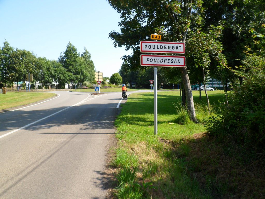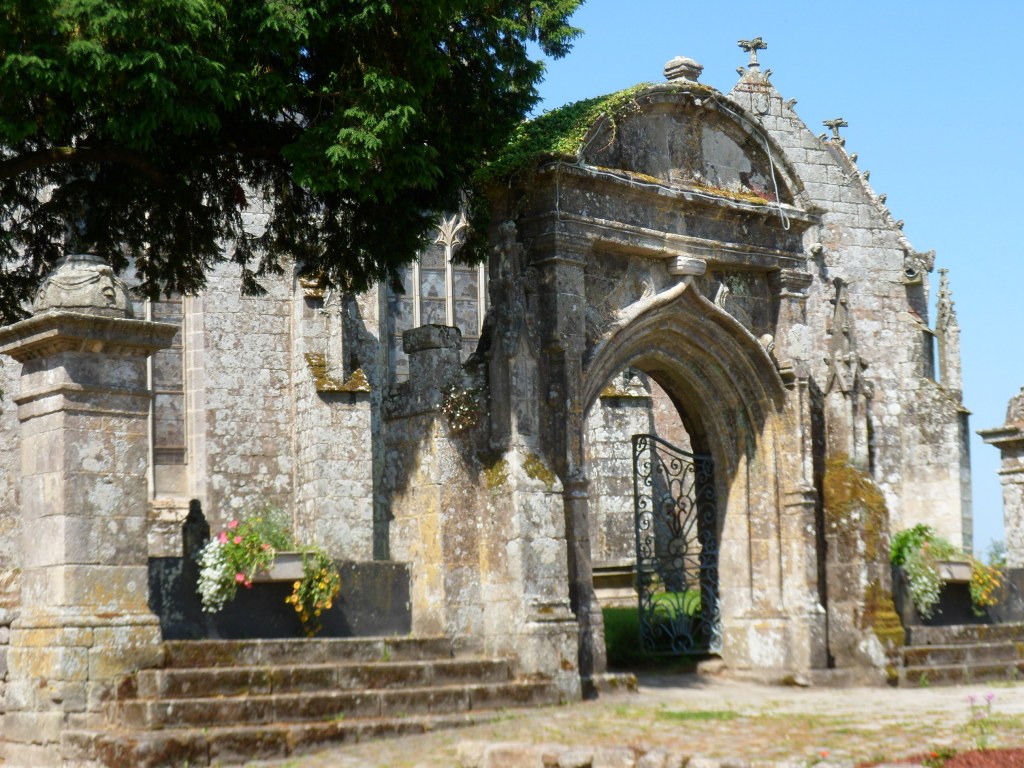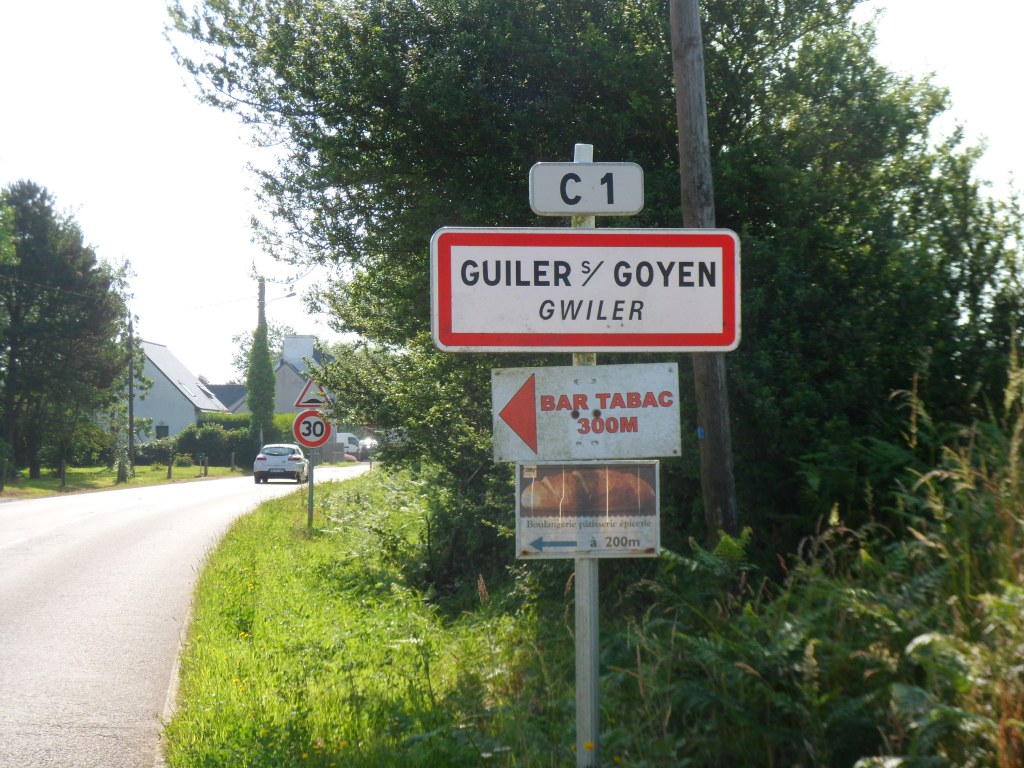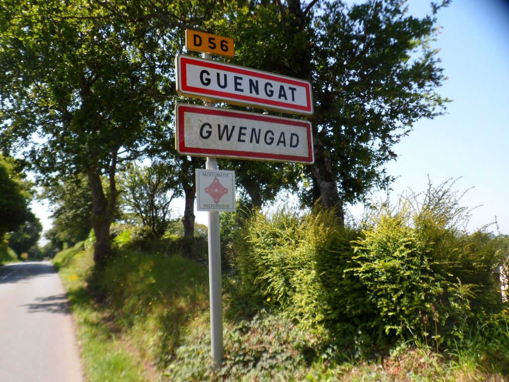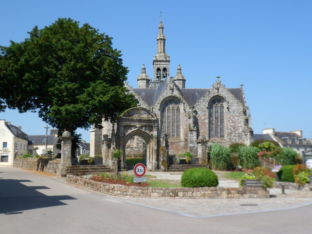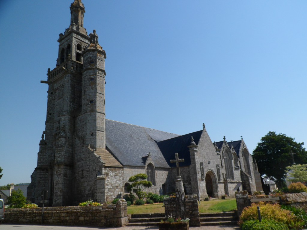 Jeudi 27 juin, j’avais décidé de faire une dernière rando de vacances de plus où moins 105km, mais la canicule m’oblige de revoir mes aspirations. Après m’être levé à 5h et constaté que le vent est très fort, je retourne coucher. Néanmoins vers 9h le vent s’est calmé et je peux quand même faire un plus petit parcours. Après avoir effectué mes préparatifs je démarre à 9h28 en traversant Plouhinec, Kerlambert, Lestrogan, Kesresquer, Guiler-sur-Goen, Kernilis, Kervalé, La croix Neuve, Kerduin pour arriver à Plogonec lieu où je décide de stopper. Il y a justement un bar ouvert pour moi déguster un coca, je m’installe sur la terrasse et je peux admirer le belle église du village du XVII siècle avec sa porte monumentale, sa façade avec pignons en dents de scie et le très original clocher de type Beaumanoir, le tout entouré de deux tourelles octogonales surmontées de lanternons. C’est l’occasion également de tester mon GPS car je n’ai plus de parcours, j’examine la carte routière et le plus facile pour moi rentrer est de me rendre à Guengat que je programme sur le GPS et sans difficulté je me laisse guider ensuite je programme Plouhinec et même chose, j’arrive au gite vers les 13h30 avec 39° sur le vélo. Un beau petit parcours essentiellement dans les terres où campagnes et bois se succèdent.