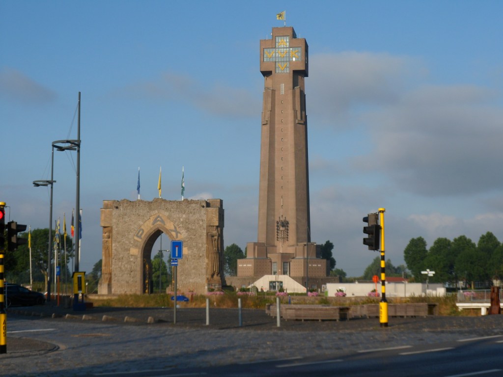Après un bon petit déjeuner, j’enfourche mon vélo à 7h48, je longe l’Yser en direction de Middelkerke, l’occasion de prendre en photo la tour de L’yser, monument de la paix construite de 1928 à 1930. Ma route traverse les régions de Avekapelle , Furnes, Nieuport, Westende et Middelkerde à 9h50 et 34km, le temps de trouver un commerce pour apposé le sésame dans mon carnet que j’en oublie de prendre des photos, néanmoins je continues vers Ostende,Bredenne,Le Coq,Wenduine,Blankenberge,Zeebruges et Knokke deuxième contrôle de la journée. Il est 12h15 et 73.46 km quand le cachet est mis dans mon carnet. Je continue mon avancée vers Westkapelle et gros problème je suis face à un énorme rond point interdit aux cyclistes mais je remarque qu’il y a un chemin en sous sol, je suis surpris de voir qu’il y a aussi un rond point en sous sol pour cyclistes mais le GPS m’indique la direction tout droit mais je ne peux pas, après avoir effectué le tour complet je vois la direction Damme et je m’y risque. En fait je fait un détour pour arriver à Damme, mon troisième contrôle du jour . En arrivant à Westkappelle je me ramasse une averse m’obligeant de mettre les bâches de protection et l’imper, cela durera un peu plus de 10 minutes. Arrivé à Damme à 13h48 et 90km je décide de souffler un peu en m’arrêtant sur une terrasse pour déguster une bière. Débarrasser des effets pour la pluie, je reprends la route à 14h en direction de Oostkamp lieu de fin d’étape en passant par Vivenkapelle,Oedelem,Moerbrugge ensuite le GPS me dirige dans des campagnes et bois je tourne à gauche, puis à droite et encore mais j’arrive quand même à l’hôtel qui est bien retiré de la civilisation, j’ai 113km et il est 15h30.