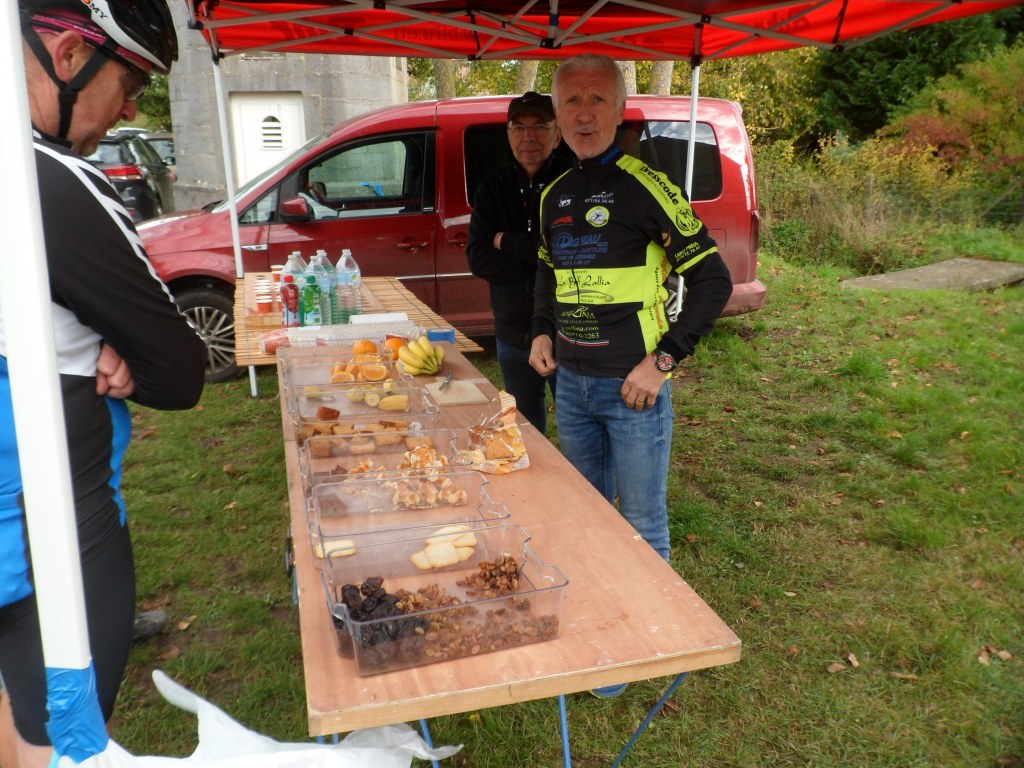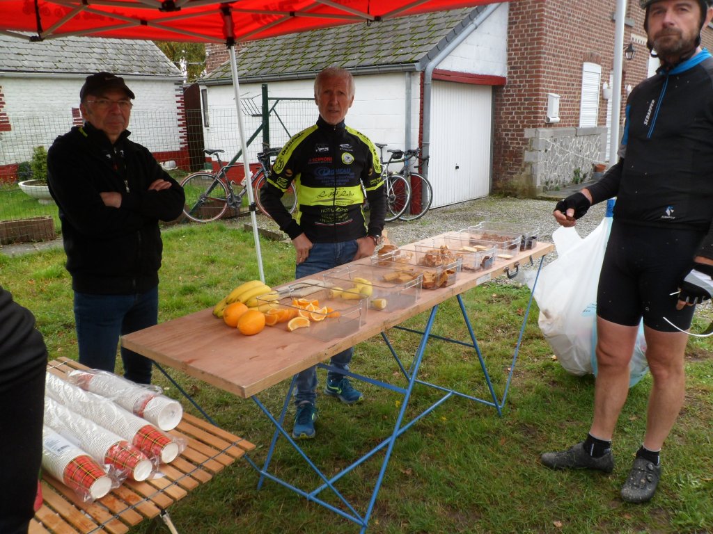 Les préparatifs terminés ainsi que la dégustation du café offert je démarre à 8h13, je me dirige vers Landelies pour emprunter le col, première difficulté après +- 5km. Ouf je suis au sommet, reste à traverser la grande route et me diriger vers Ham sur Heure, je rejoins Eric et Gerda qui sont à l’arrêts car Gerda à le câble de son dérailleur cassé donc abandon pour elle. Je continue ma route vers Beignée, traverse le Bultia en direction de Gerpinnes, Hymiée,Fromiée et Oret lieu du ravito. Après un bref repos je reprends la route en traversant Morialmé,Thy le Baudouin, Somzée,Gourdinne,Thy le Château,Berzée,Thuillies , en passant je remarque que les travaux de rénovation sur la place n’avance pas vite. J’arrive à la grande route de Beaumont, je vire à gauche puis à droite vers Ragnies,Biercée,Lobbes et sa portelette, Anderlues et rentré vers 13h30 à Leernes au local. J’ai l’occasion d’effectuer ma troisième mi-temps à l’extérieur en dégustant un délicieux pain saucisse. Le parcours est très beau mais très costaud surtout avec le vent qui se déchaine parfois en rafale sinon la météo est excellente pour la pratique de notre sport. Le fléchage est très bien sauf aux endroits où des petits plaisantins s’amuse à retirer les flèches. Je remercie les organisateurs pour leur parcours dans des régions que je connais mais sur des routes non connues pour moi. J’ai réellement passé une belle journée.
