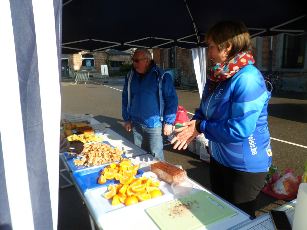 Samedi, je me rends à Auvelais pour faire un petit coucou aux amis du Vélo Loisir Sambreville qui organise sa première rando de la saison. Comme la météo annoncée est bonne et que je n’ai rien prévu pour la dimanche je décide de faire le parcours de 105km. J’arrive au pavillon Butacide vers 8h, il y a déjà quelques amis. J’effectue mon inscription et prépare ma bécane, je démarre à 8h10, il fait très froid mais bien équipé c’est supportable. Je traverse Jemeppe, Onoz, Spy où j’effectue une halte pour prendre le château en photo, enfin réussie je continue ma route vers Temploux, Rhisnes,Emines,Villers-Lez-Heest, Warisoulx, Upignie, Mehaigne et Grand Leez lieu du ravito. Il est bien garni et beaucoup de cyclos si sont rassemblés pour se rassasier et tailler une bavette, je fais la même chose et salue mon amie Rosa. Ensuite je prends la direction du 105km qui me dirige vers Tourrines st Lambert, arrivé au 56 km je suis à Nil st Vincent et je ne peux manquer d’aller voir le monument du centre géographique de la Belgique ensuite je reprends ma route vers Hervillers que je traverse et constate qu’il n’y plus de flèche, je demande ma route à une passante qui me renseigne le chemin à suivre, je suis complétement perdu, néanmoins j’arrive quand même à Villers la Ville par une route descendante et avec de gros pavés très humides et glissants. Enfin je retrouve mes flèches, je traverse Tilly puis rebelote perdu dans la nature, décidément ce n’est pas mon jour alors je prends la décision de programmé mon GPS sur la ville de Corroy le Château et me voila parti à l’aventure mais j’y arrive et retrouve des traces. Alors je programme de nouveau mon GPS sur Auvelais et me laisse guider tout en trouvant mes flèches. Le vent commence à souffler fort mais voila le bout du tunnel, je traverse la route de la basse Sambre et rentre au pavillon Butacide à Auvelais, il est 15h, plus personne sauf les membres du club qui m’attendent, épuisé je range mon matériel et vais boire une bonne super des fagnes offerte par le club, j’ai même eu droit à manger trois excellents croque monsieur. Je remercie les membres du club pour l’accueil qu’ils m’ont réservé lors de ma rentrée, c’est vraiment gentil et incite à y revenir.