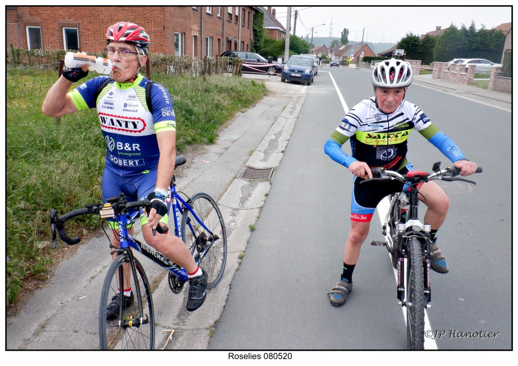 Cette semaine nous avons décidé de rouler le vendredi en toute légalité, n’en déplaise à certain légaliste. Jipé et moi démarrons de chez moi à 13h38 en respectant toujours les consignes de sécurité en vigueur. On se dirige vers Ransart, Pironchamps, le Campinaire, Pont de Loup lieu de notre rendez-vous avec Mario, à trois nous allons faire la reconnaissance du parcours des 20 km du télé vie de 2021, nous traversons la zone portuaire de Aiseau Presles pour arriver à Farciennes, nous longeons la route de la basse Sambre (N90) puis Roselies, Aiseau/Presles, et retour au point du départ du parcours en question avec 32 km, nous saluons notre ami Mario. Jipè et moi repartons en direction de Châtelet,Châtelineau,Gilly et retour à Lodelinsart. Mais auparavant nous avons dû faire une halte car pour couronner notre rando, j’ai eu une fuite en étant sur le Ravel juste avant de rentrer. La météo est réellement estivale en témoigne les nombreux cyclos rencontrés.