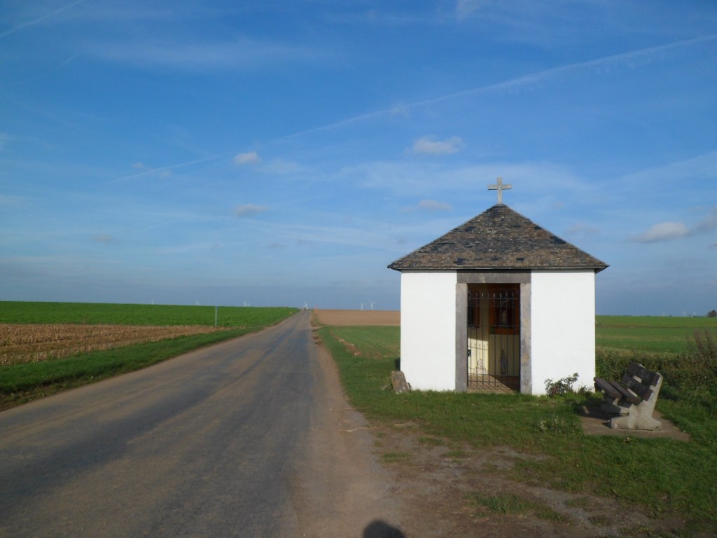 C’est la raison pour laquelle je me rends à Autre-Eglise pour effectuer la randonnée que le club de la Margelle a concocté pour nous permettre de traverser cette belle région. Mes préparatifs terminés,je démarre à 8h54, me dirigeant vers Ramilies, Taviers sur la rue Bas-Tige puis je tourne à gauche sur la route de la Hesbaye pour arriver à Emptinne, puis Seron,Meeffe, Acosse , Burdinne au km 24 mais la route me conduit dans le bois Haut Fond de Ri avec une côte de plus de 10%, oufti je continue vers Héron,Couthuin, Lavoir dans des très grandes étendues de terre cultivées. J’arrive à Huccorgne, je passe devant le centre pénitencier de Marneffe, petit arrêt photo puis je continue ma route par une dure côte pour arriver à Marneffe village, ensuite je continue mon parcours en découvrant de très beaux petits villages comme celui de Ciplet et bien d’autres. Je rentre à 12h50 sur le parking où j’avais déposé ma voiture, tout en rangeant mes affaires je fais la causette avec un cyclo du club. Encore une belle rando à mon actif, c’est un réel plaisir de se rendre à Autre-Eglise pour les belles permanentes que le club a réalisé.