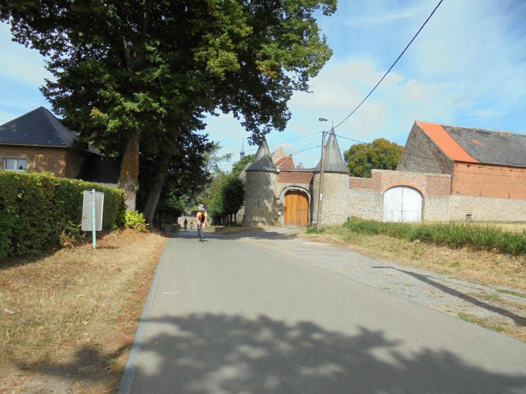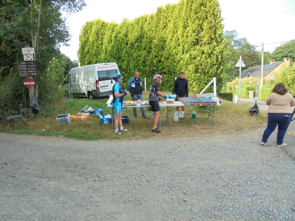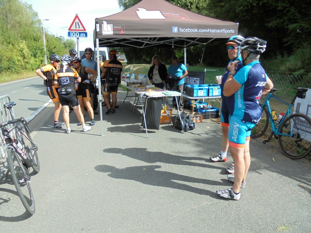 Venons-en à la rando du dimanche 21 août, je me rends à Ronquière au plan incliné où la Province de Hainaut Cycling Team organise sa rando, j’arrive vers 7h30, l’inscription se fait sous le plan incliné à l’extérieur , il y a déjà beaucoup de monde, plus de 400 participants. Inscription terminée ainsi que les préparatifs vélo, je démarre à 7h56 vers Feluy, Bonsecour, Barouche, Scoufleny, Mignault lieu du premier ravito au km 37. Ensuite le parcours me dirige vers Le Roeulx, Thieu, Ascenseur de Strèpy, Ville sur Haine, Thieusies, Sirieu et Naast, deuxième ravito au km 73. Puis je continue vers Ecaussinnes et son château et la fameuse côte du Poirier avant de rentrer au plan incliné. Le parcours est magnifique, des régions que je découvres et bien vallonné (684m de dénivelé) sauf la côte du Poirier aucune difficulté majeure. La troisième mi-temps je la ferai seul car les amis Jean Pierre et Alain sont repartis . Aujourd’hui pas de caméra, celle-ci était déchargée.