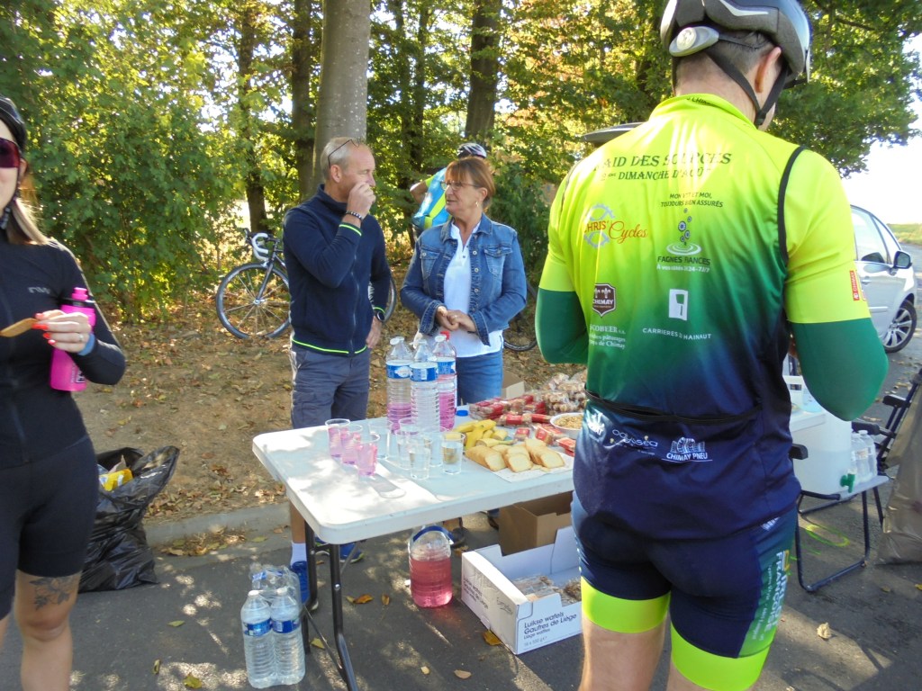 Pour mon dimanche je décide de changer de zone, je me rends à Chimay où le club Tandem de la Botte organise un parcours ouvert aux cyclistes, graveleux et marcheurs. J’arrive aux environs de 7h20 , il y a déjà beaucoup de monde, on fait la fil à l’inscription mais ça se fait rapidement. Mes préparatifs terminés, je démarre à 7h49 en suivant le fléchage qui me dirige vers Saint Remy,Robechies,Bailèvre,Salle,Villers-la-Tour,Seloignes,Forges-Philippe (lieu de notre ancien ravito lors du rallye des Trappistes), Forges, et, l’abbaye de Scourmont lieu de notre ravito situé au 42ème km. Après avoir mangé un bout, je reprends ma route vers Riezes,Lompret,Vaulx,Virelles et retour au point de départ. Le parcours est bien vallonné avec parfois des bosses de 10 et 13%. Le fléchage est super ainsi que le ravito. La météo est un peu fraiche mais agréable pour rouler dans cette belle région. Lors de ma rentrée j’ai eu droit à une tartine de fromage et une réduction sur ma consommation, je remercie d’ailleurs les organisateurs pour ce geste et pour toute la bonne organisation.