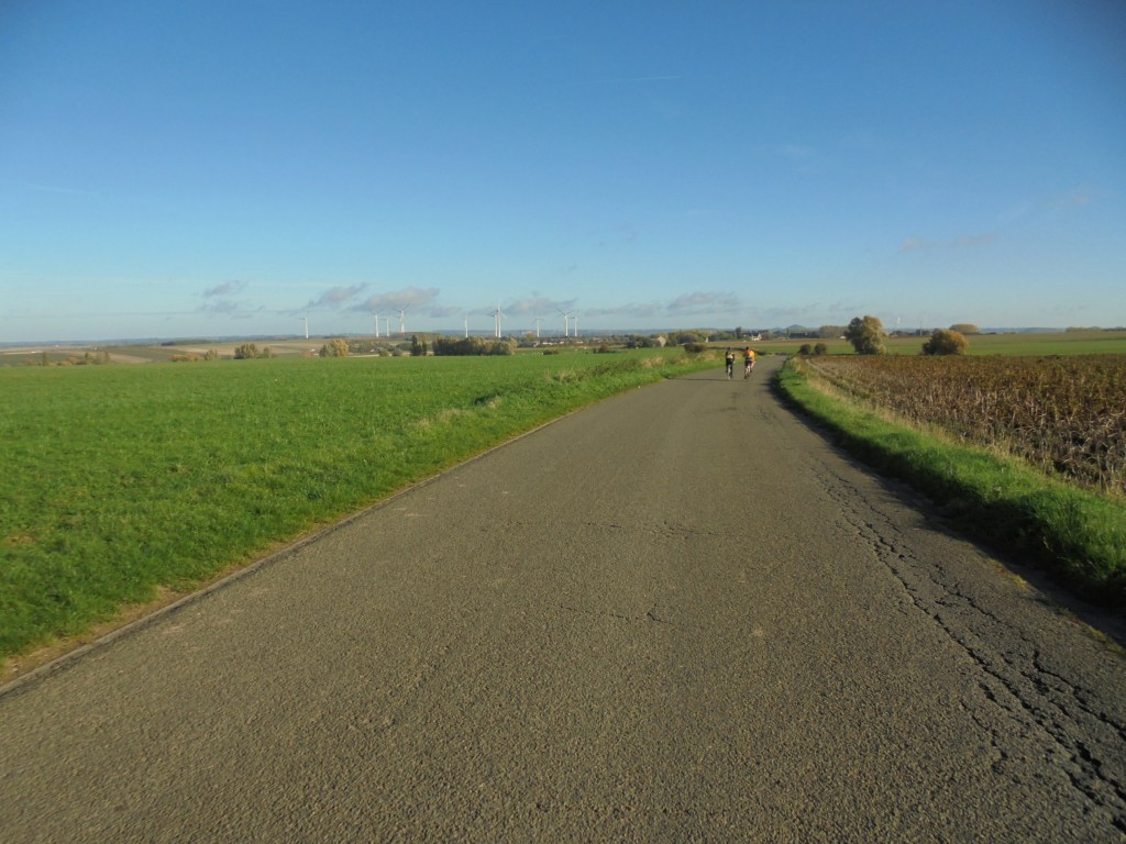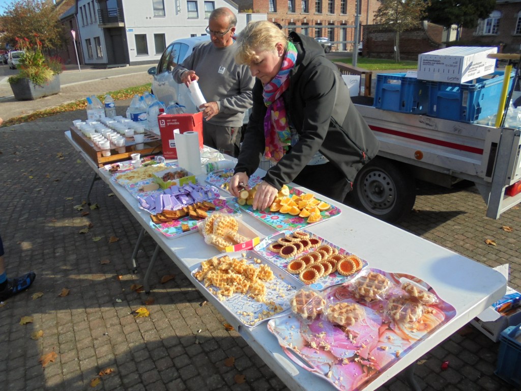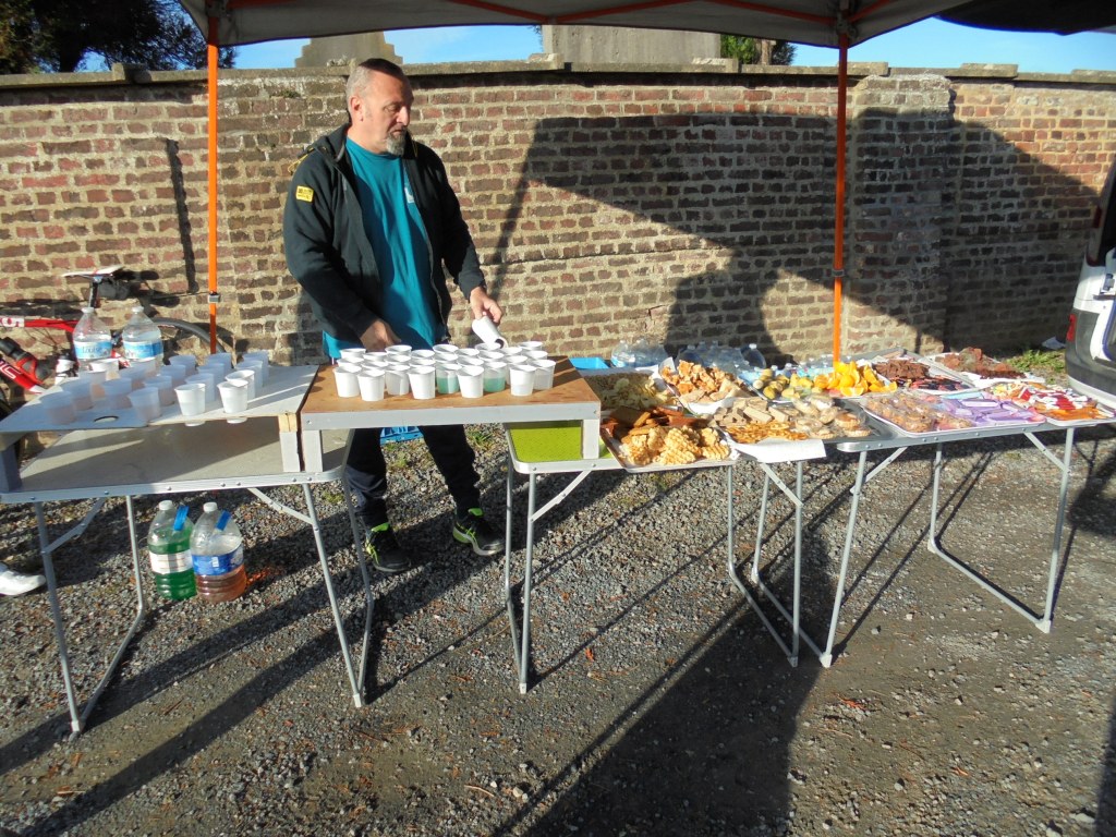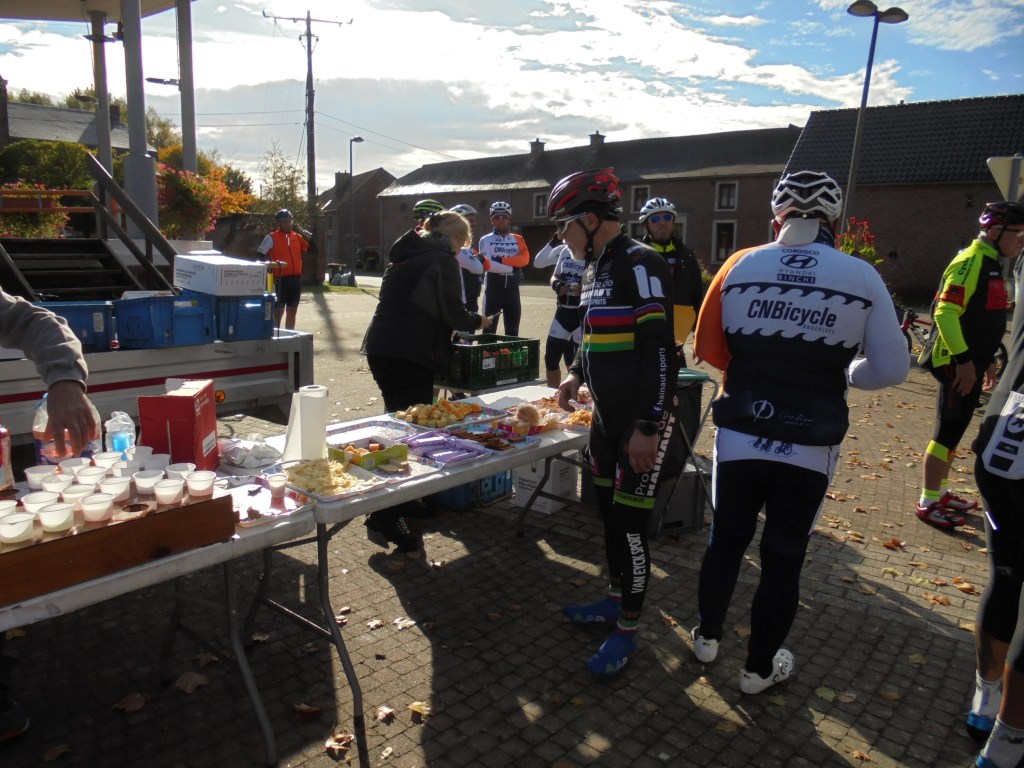 Ce dimanche, je me rends à Anderlues pour rouler une organisation de la Province de Hainaut cycling Team crée par mon ami Alain Leroy. Arrivé sur place vers 7h45, je rencontre mes amis Alain et Jean Pierre, nous prendrons le café matinal offert en examinant nos feuilles de route. Ensuite je prépare ma machine pour le parcours de 85 km et démarre à 8h08. Je me dirige vers Ansuelle,Sars la Buissière,Solre sur Sambre,Merbes le Château,Erquelines, Grand Reng et Rouveroy lieu du premier ravito, j’ai l’occasion de voir nos deux Manu et cela fait bien plaisir. Ensuite je reprends mon parcours vers Haulchin, Estinnes,Fauroeulx et Peissant lieu du deuxième ravito, puis je continue vers Vellereille, Buvrinnes et retour à Anderlues. Un parcours super bien fléché, soit au sol soit au poteau et impossible de se tromper traversant les beaux villages de la région. La météo est restée très bonne ce qui ravira les très nombreux cyclos présents. Ma troisième mi-temps avec les deux Manu rentrés en même temps que moi est un réel plaisir pour ce remémorer des souvenirs.