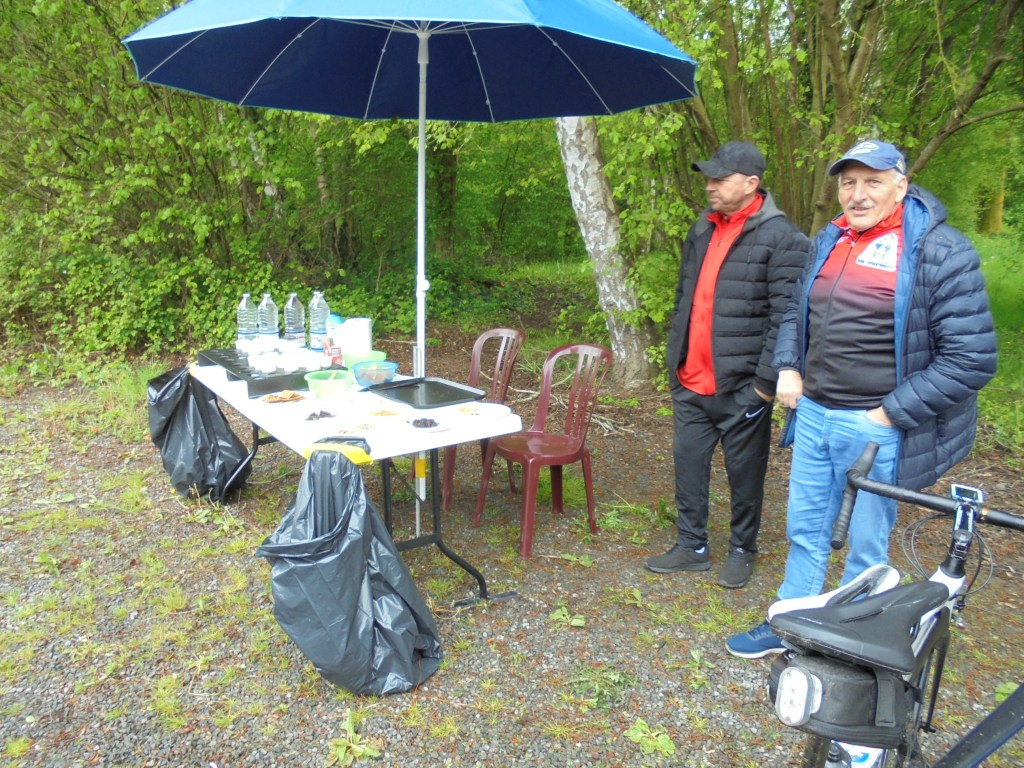 Ce samedi, je vais à Gilly au vélodrome pour effectuer la rando organisée par le club Amitié Gilly. A l’inscription, j’opte pour le parcours de 84 km avec un dénivelé de 946m. Le fléchage vert fluo me dirige vers Châtelet, la longue montée vers Presles, Sart-Eustache,Devant-les-Bois, Bossière,Graux,Denée,Warnant, lieu ou je me trompe car je continue tout droit lorsque je me rends compte de mon erreur, demi-tour pour retrouver ma route, j’ai +-2km en trop. Au km 40, j’arrive à Foy lieu du ravito. Je reprends la route vers Sosoye,Maredsous, ….. Le circuit est très beau et très bien fléché. La météo pluvieuse au départ restera plus où moins bonne mais très humide, m’obligeant à rincer mon vélo pour rouler demain. La troisième mi-temps se fera en compagnie d’amis de la région.