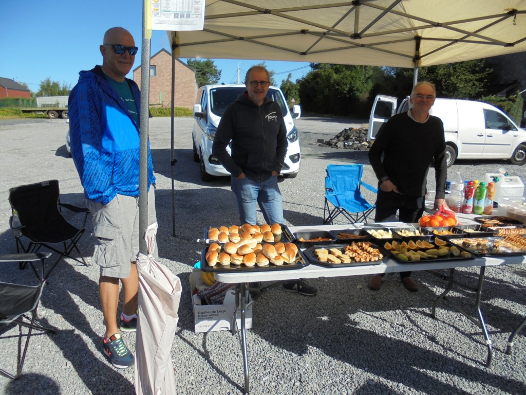 Ce dimanche 25 aout 2024, après plusieurs hésitations je me rends à Vedrin pour la rando organisée par le Vélo Club Vedrin, il s’agit d’un brevet à dénivelé (BAD) de 973 m pour un parcours de 84km. J’arrive sur place vers 7h35, Jean-Pierre et Alain sont déjà occupés à boire le café matinal quand j’arrive accompagné de André. Mes préparatifs vélo terminés, je démarre à 8h en me dirigeant vers Comognes,Bouge, Beez, Jambes, après 12km j’ai déjà une première côte, celle de Live sur Meuse. Puis je continue vers Loyers,Mozet,Goyet et son magnifique château (voir photo). Je continue et arrive devant un mur avec un pourcentage entre 9-12% au km 37 sur la côte de Haltinne. Enfin au km 43 j’arrive au ravito bien mérité. Bien sustenté je reprends ma route qui me conduira à Vedrin, il sera alors 12h. C’est un magnifique circuit super bien fléché et bien vallonné traversant de très beaux villages du namurois. A ma rentrée, après avoir fait homologuer mon BAD je prends ma troisième mi-temps en espérant revoir les copains mais hélas je ne verrai personnes. Merci aux organisateurs