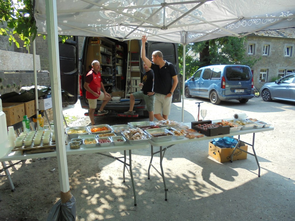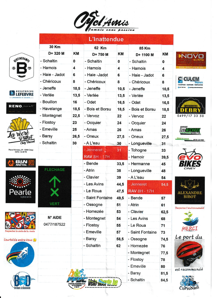Samedi je me rends à Hamois pour rouler sur une rando organisée par le club local « les Cycl’amis ». A mon arrivée vers 7h35, je remarque qu’il y a déjà beaucoup de cyclo et les places de parking se font rares, néanmoins je trouve une place dans un petit prés accessible. Mes préparatifs terminés je m’élance à 8h03 vers Haie Jadot,Jeneffe etc. J’arrive au ravito vers les 11h au km 54.5, après m’être sustenté je redémarre et remarque que mon petit compteur était bloqué, plus moyen de changer l’assistance et il me reste encore du chemin à parcourir et péniblement je rentre au local . J’ai une surprise au km 73, au lieu dit « Saint Fontaine » la route est traversée par le ruisseau (voir photo), c’est une curiosité dans la région. Après ma troisième mi-temps je décide de me rendre chez mon vélociste qui m’a dépanné rapidement. Le parcours est super bien fléché, mais difficile , enfin il faut justifier son BAD. La météo légèrement froide le matin, ensuite estivale sans vent